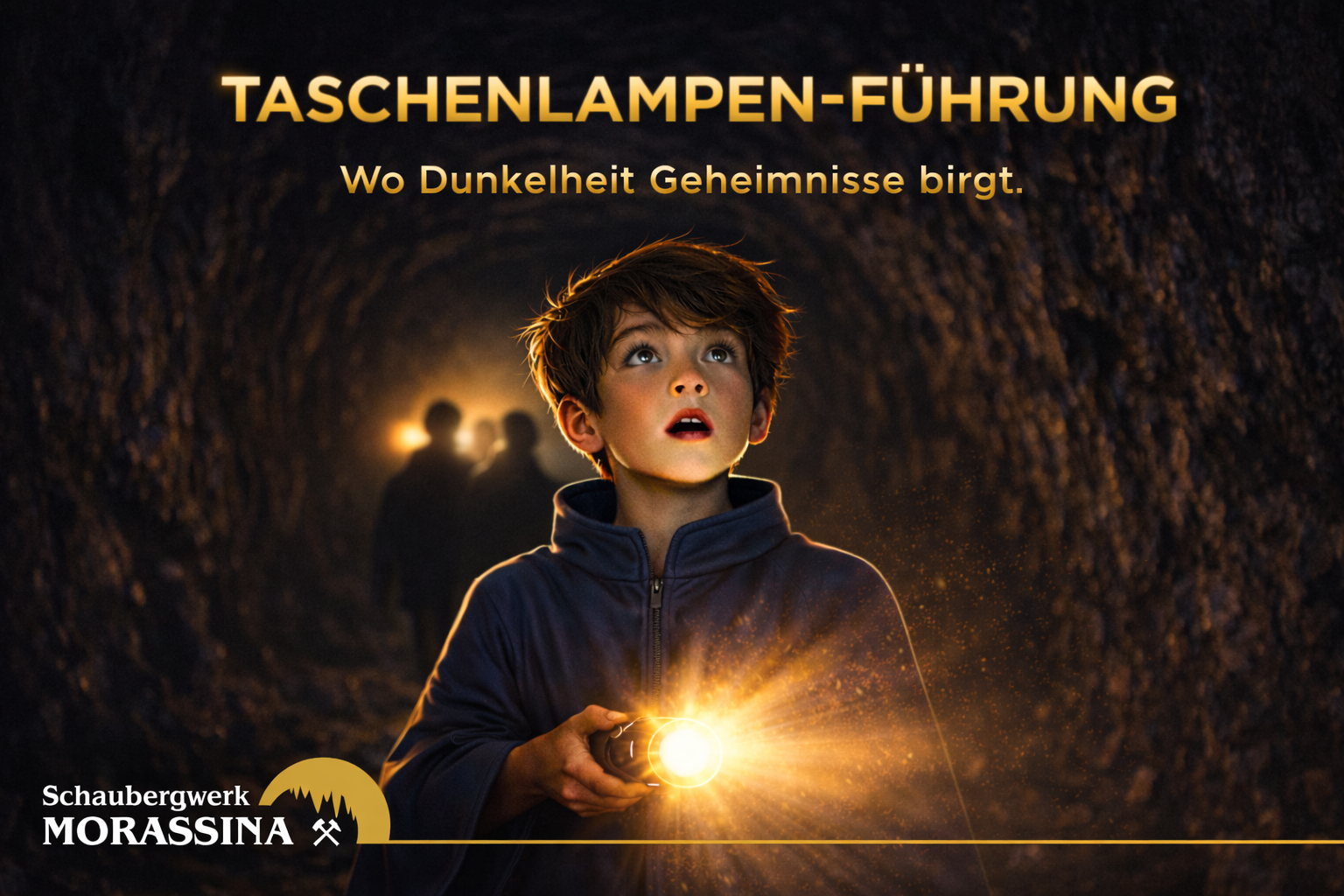 Bei unserer Taschenlampenführung entdeckst du die Morassina auf eine ganz besondere Weise. Statt der gewohnten Beleuchtung begleitet dich nur der Lichtkegel deiner Taschenlampe durch die geheimnisvollen Stollen des Berges.