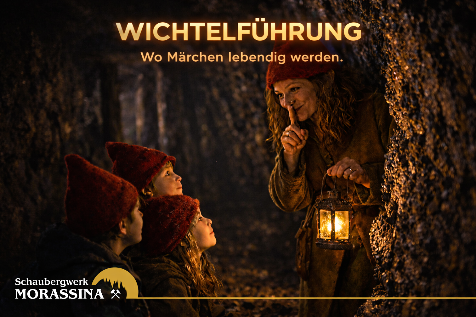 Gemeinsam mit Wichtlin Ida / Wichtel Sonnenschein begeben sich kleine Entdecker auf eine märchenhafte Reise durch das Schaubergwerk Morassina.